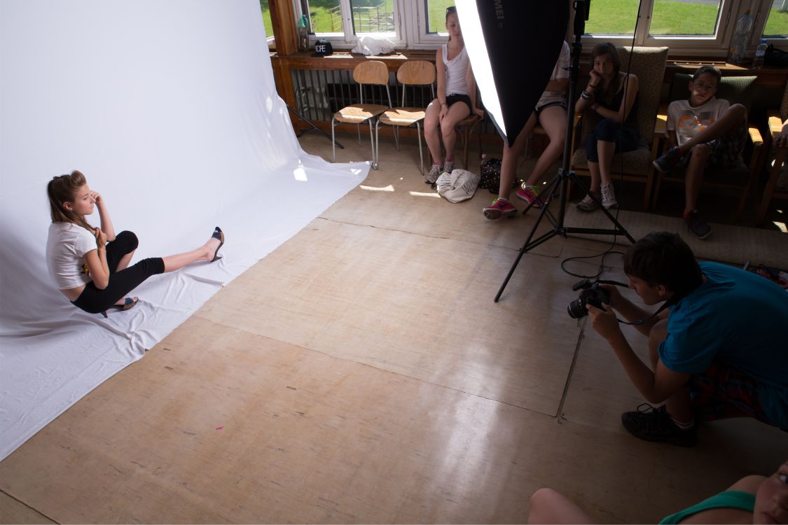 Program fotografického tábora bude probíhat ve čtyřech výukových blocích (3 dopoledne, 1 odpoledne). Tento tábor je určen především fotografickým začátečníkům, kteří chtějí v této činnosti nabýt bohatých znalostí, jež uplatní v budoucnu - ať už jako amatérští či profesionální fotografové. Tábor vede zkušená profesionální fotografka, která s námi spolupracuje již několik let. Náplní prvních dnů jsou samozřejmě úplné základy (focení na slunci x tvorba fotek ve tmě, práce s ostřícími body), v dalších dnech turnusu poté dojde na focení detailů (statické či v pohybu), práci s bleskem nebo pokusy s focením v ateliéru. Dojde také na reportážní, či experimentální fotografii. Důležitou částí tábora je focení lidí v pohybu, ať už na tanečních či sportovních hodinách, případně na večerních programech.